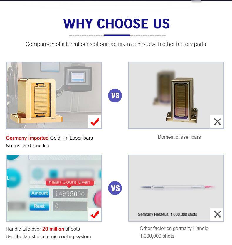 - Підходить для різних типів шкіри: Діодні лазери ефективні для більшості фототипів шкіри, хоча найбільший ефект досягається на світлій шкірі з темним волоссям. При правильних налаштуваннях він може бути безпечним і для темнішої шкіри.